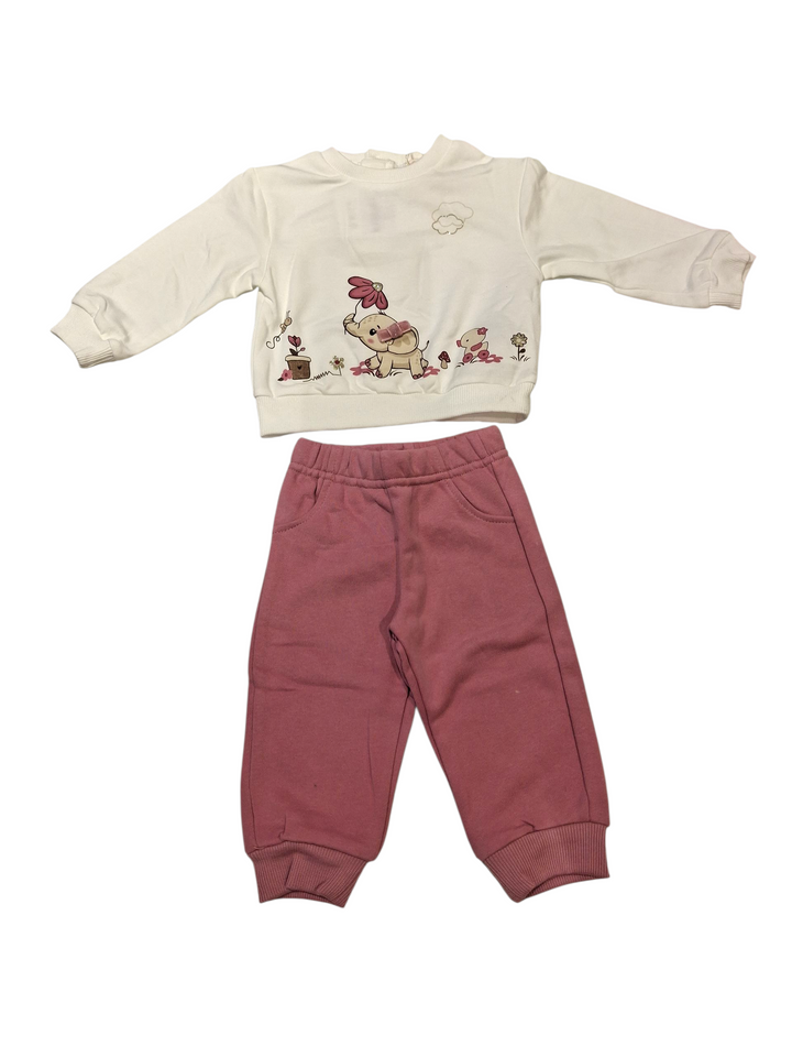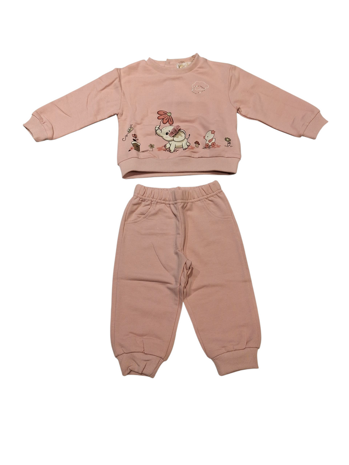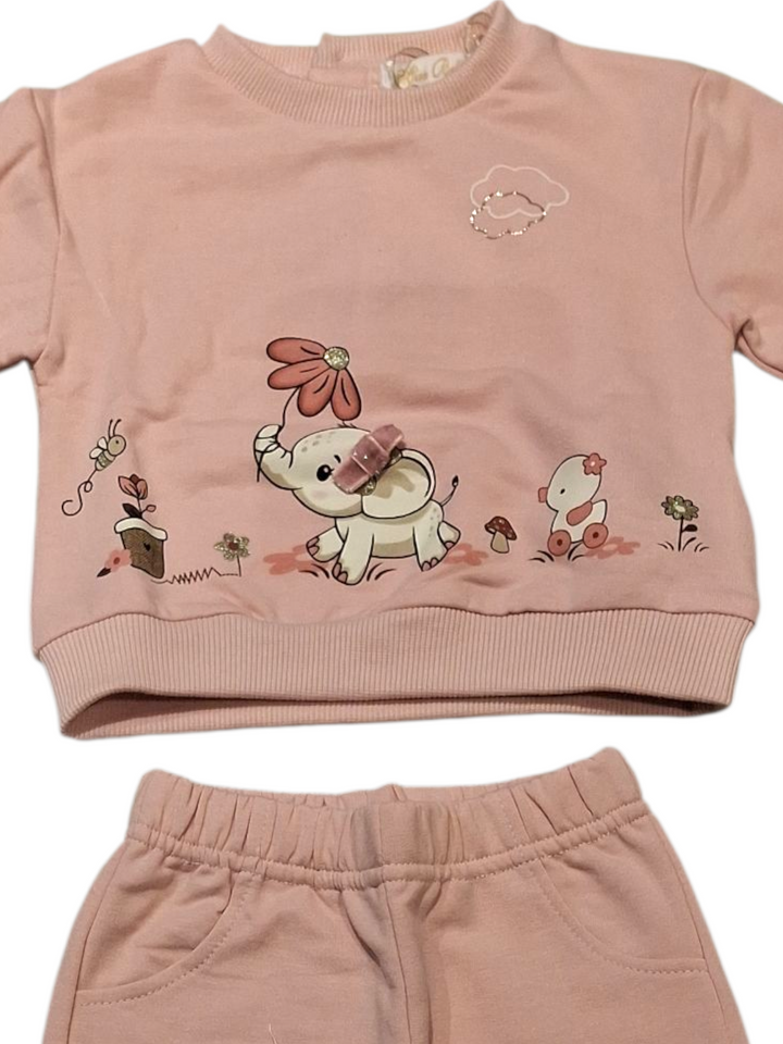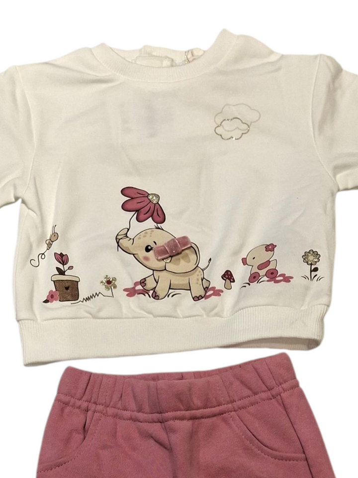 Questo completo 2 pezzi per femminuccia è perfetto per un look dolce e allegro grazie alla stampa dell'elefantino. Realizzato con materiali di alta qualità, offre comfort e resistenza. Ideale per far sentire la tua bambina coccolata e alla moda.