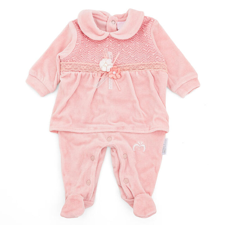 Una meravigliosa tutina in ciniglia per neonati con un elegante colletto e graziosi fiorellini applicati al centro. Realizzata con materiali morbidi e confortevoli per offrire il massimo comfort alla tua piccola. Perfetta per completare il suo look con stile e delicatezza. Garantisce il massimo della qualità per la pelle sensibile dei neonati.