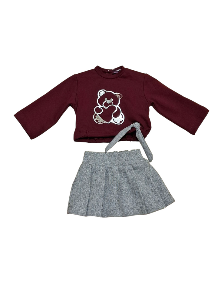 Questo completo per femminuccia è perfetto per uno stile dolce e alla moda. La felpa con stampa orso renderà la tua bimba adorabile, mentre la gonna a pieghe in panno le darà un tocco elegante. Comodo e di alta qualità, questo completo è ideale per ogni occasione.