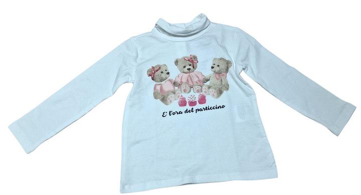 - T-shirt in interlock di puro cotone con collo alto e maniche lunghe
