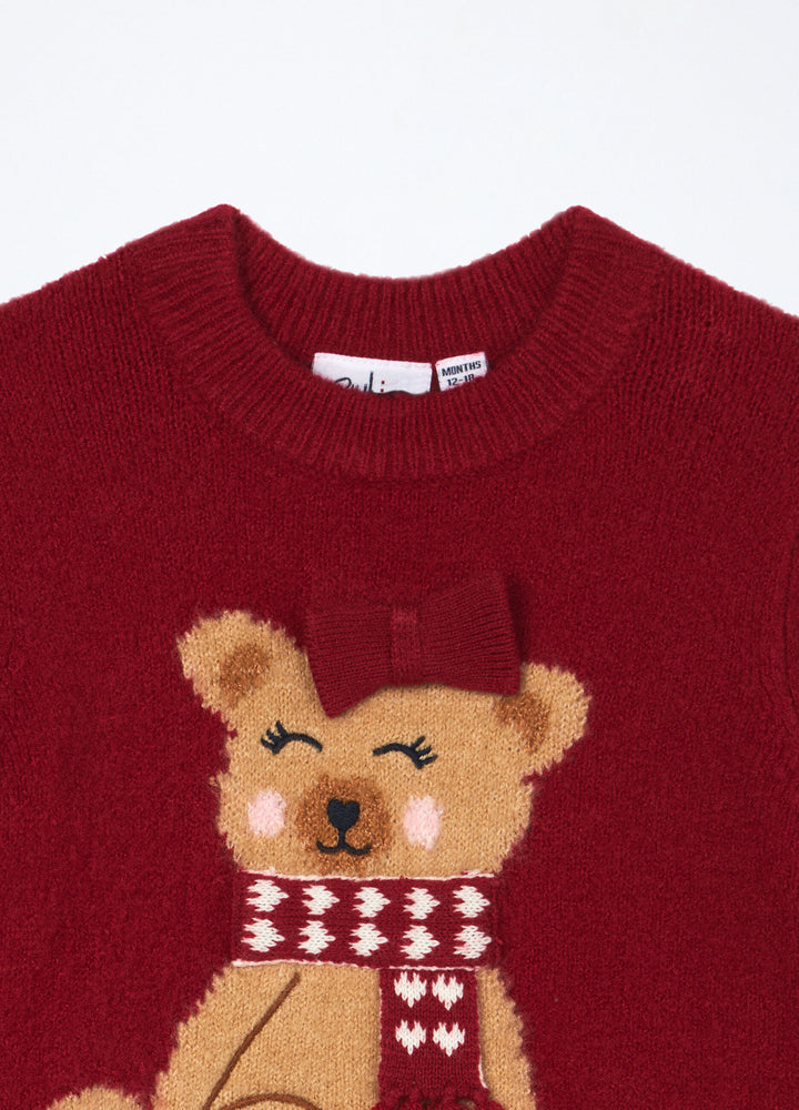 - Tricot con lavorazione jacquard. Ricamo sul davanti ed applicazioni