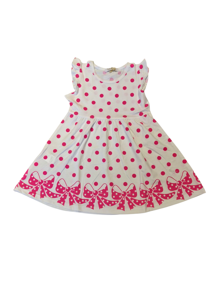 Questo adorabile abito smanicato con fantasia a pois è perfetto per le femminucce durante l'estate. Realizzato con materiali leggeri e traspiranti, offre comfort e freschezza in ogni occasione. Stile e praticità si incontrano in questo must-have per le tue piccole fashioniste.