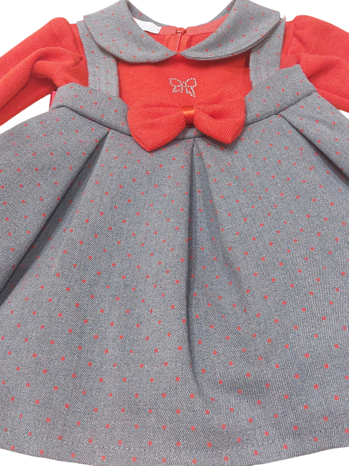 Questo elegante abito a pois per femminuccia presenta un grazioso colletto e delle adorabili finte bratelle. Completa il look con un grazioso fiocchetto. Ideale per ogni occasione, perfetto per le piccole fashioniste in erba.