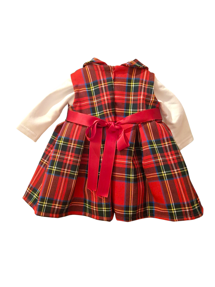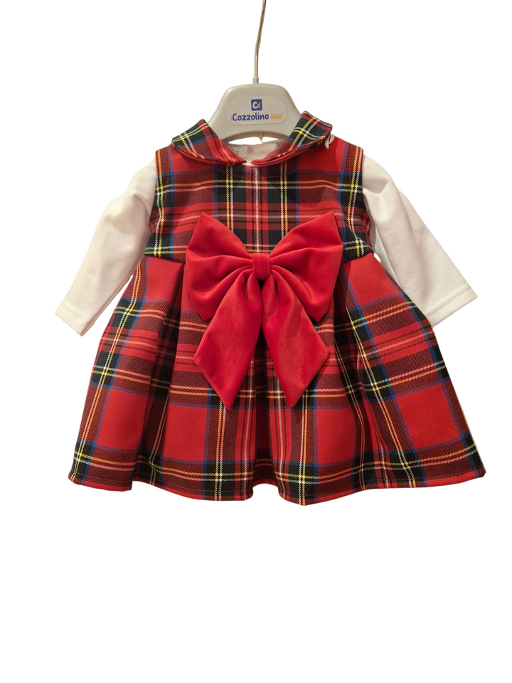 Questo elegante abito natalizio per femminuccia scozzese è adornato da un bellissimo fiocco in velluto. Realizzato con materiali di alta qualità, garantisce un look sofisticato e confortevole per le feste. Un must-have per la tua bambina durante le celebrazioni natalizie.
