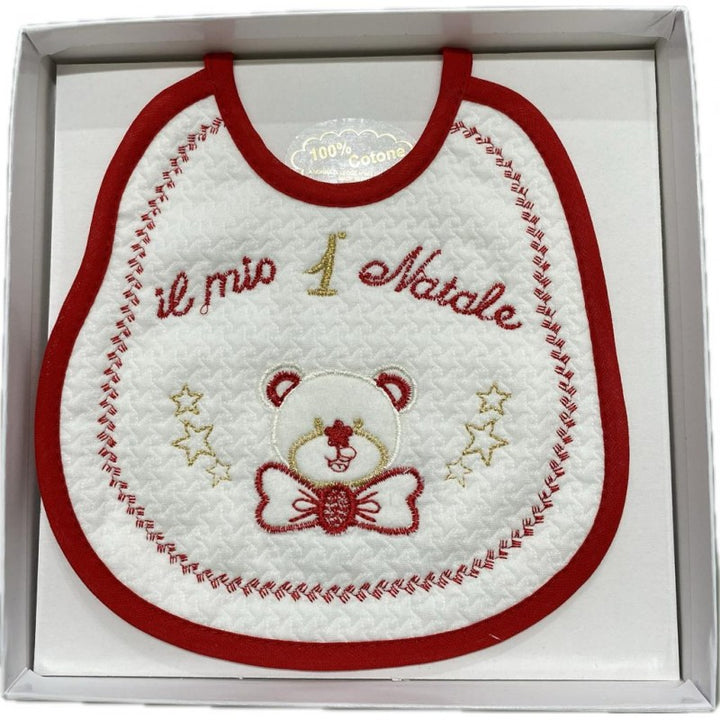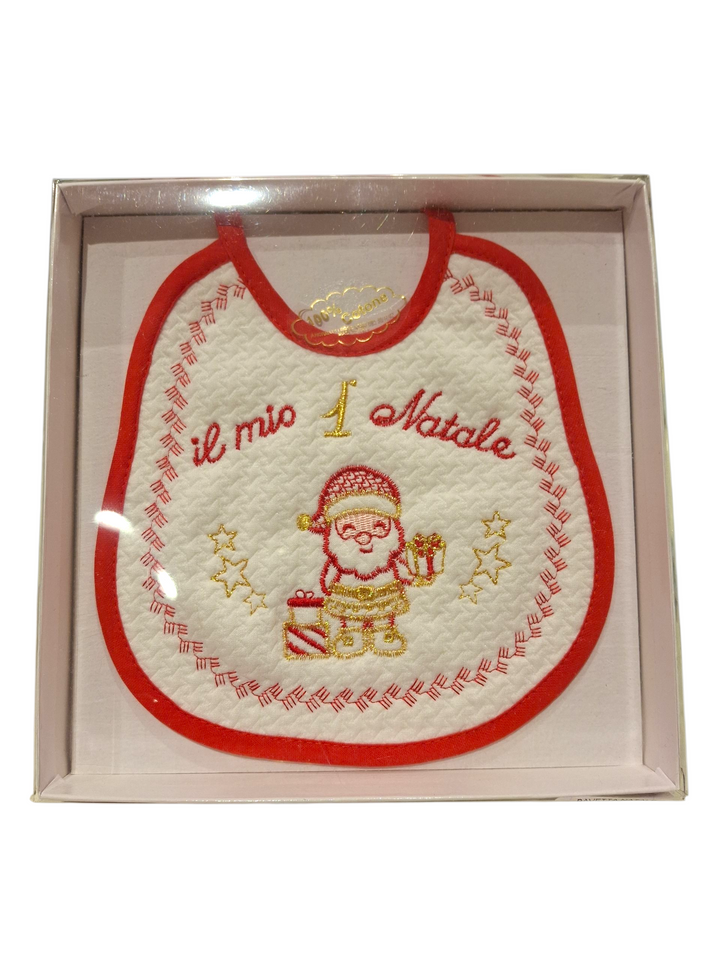 Le bavette natalizie ricamate "il mio 1°Natale" sono la scelta perfetta per festeggiare il primo Natale del tuo bambino. Realizzate al 100% in cotone, queste bavette sono morbide, confortevoli e assorbenti per proteggere il tuo piccolo durante i pasti. Con i dettagli delicati e festivi ricamati, aggiungono un tocco speciale alle festività.