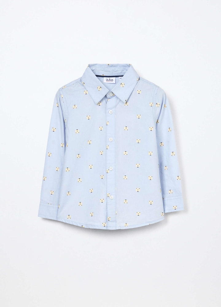 • Camicia in popeline di puro cotone con stampa a motivo all over.