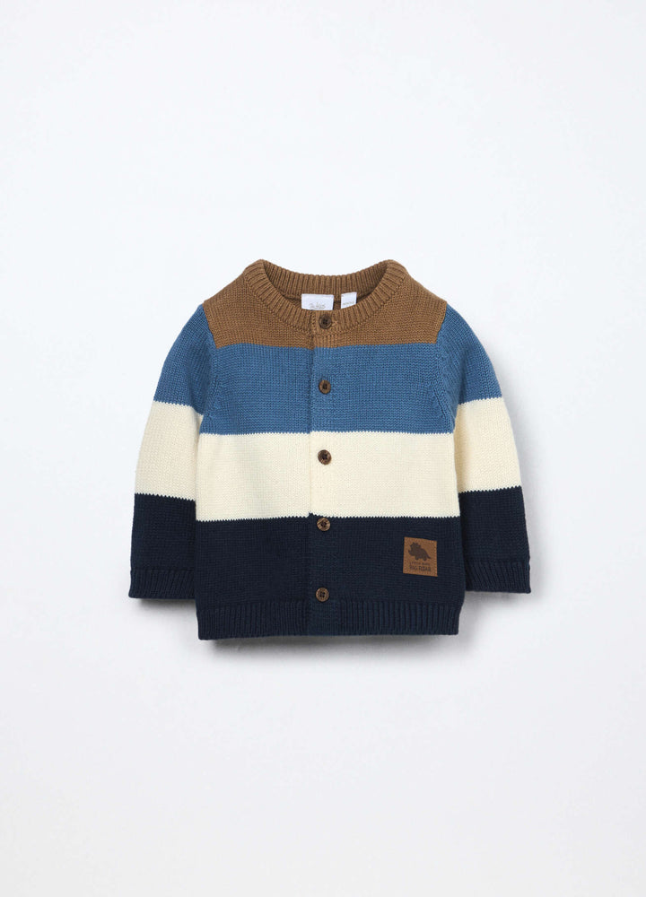 - Cardigan tricot in puro cotone con motivo a righe multicolor.