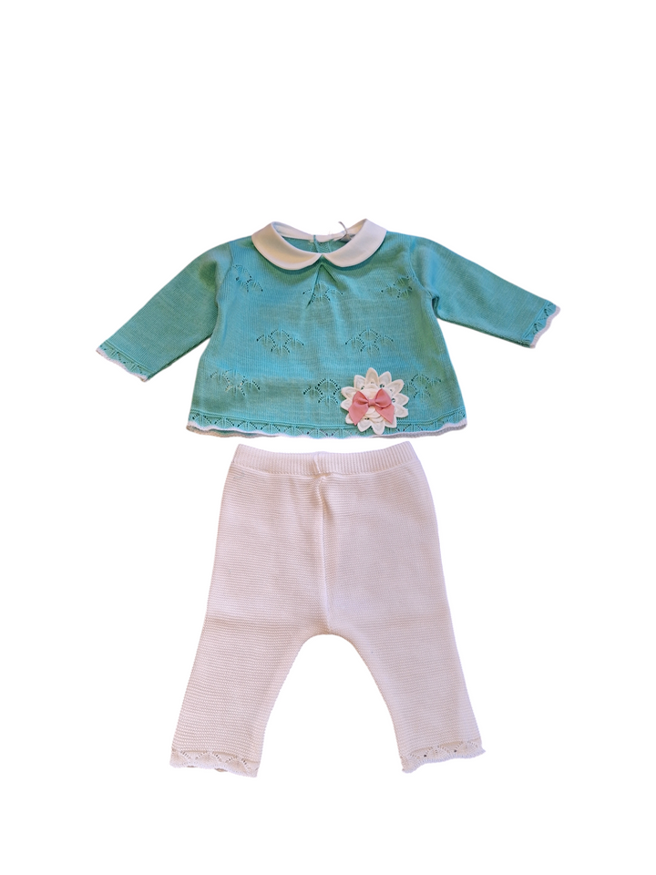 Completo 2 pezzi in filo di scozia verde acqua