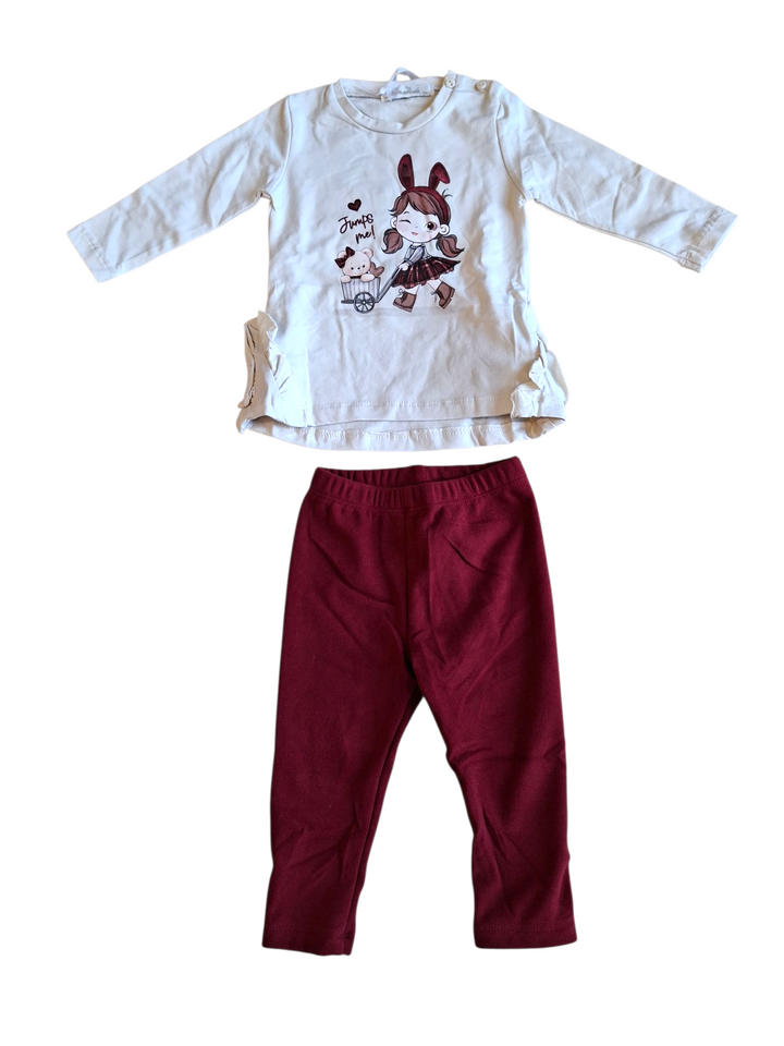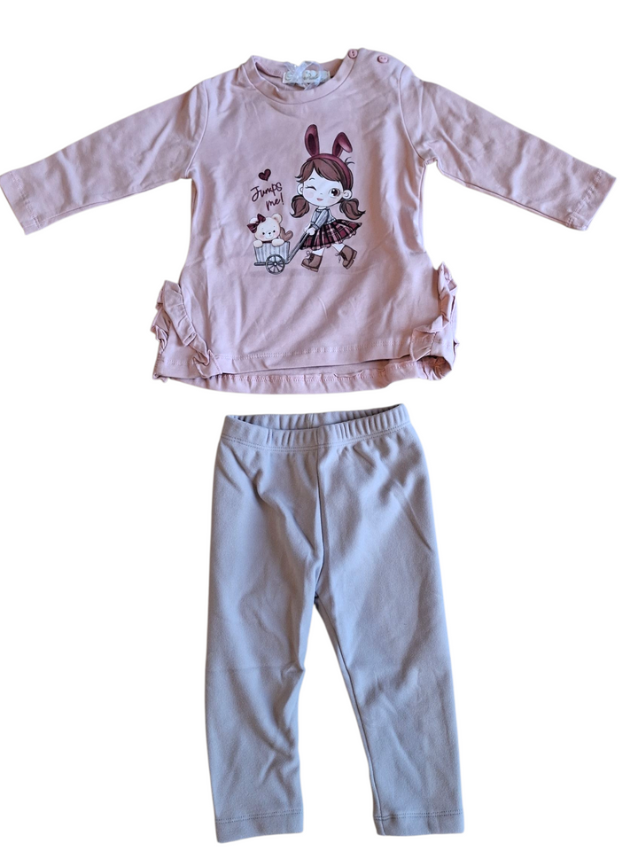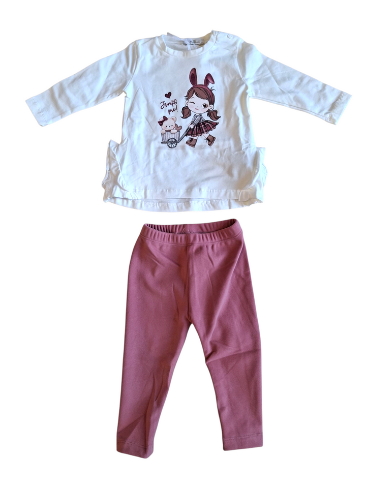 Rendi la tua femminuccia bellissima e alla moda con questo completo 2 pezzi. Una T-shirt felpata con una stampa unica e dei leggings in velluto liscio per il massimo comfort. Il completo è perfetto per creare tanti look divertenti e alla moda per la tua piccola.