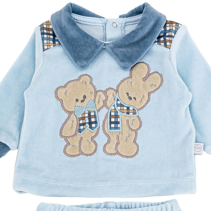 Completo 2 pezzi ciniglia con colletto e con ricamo sul davanti