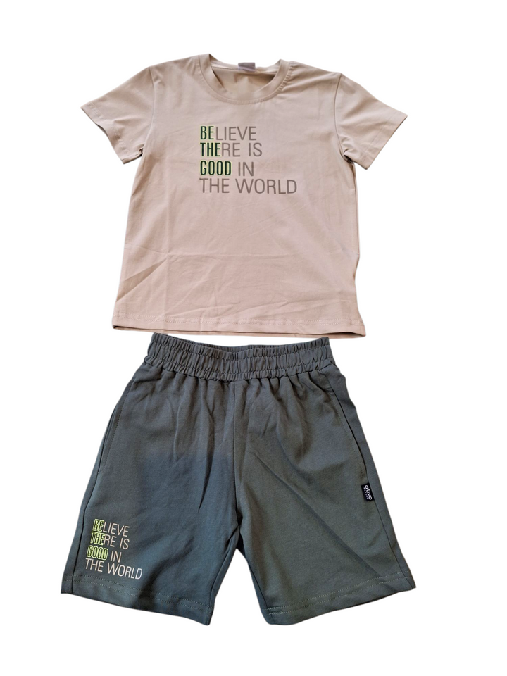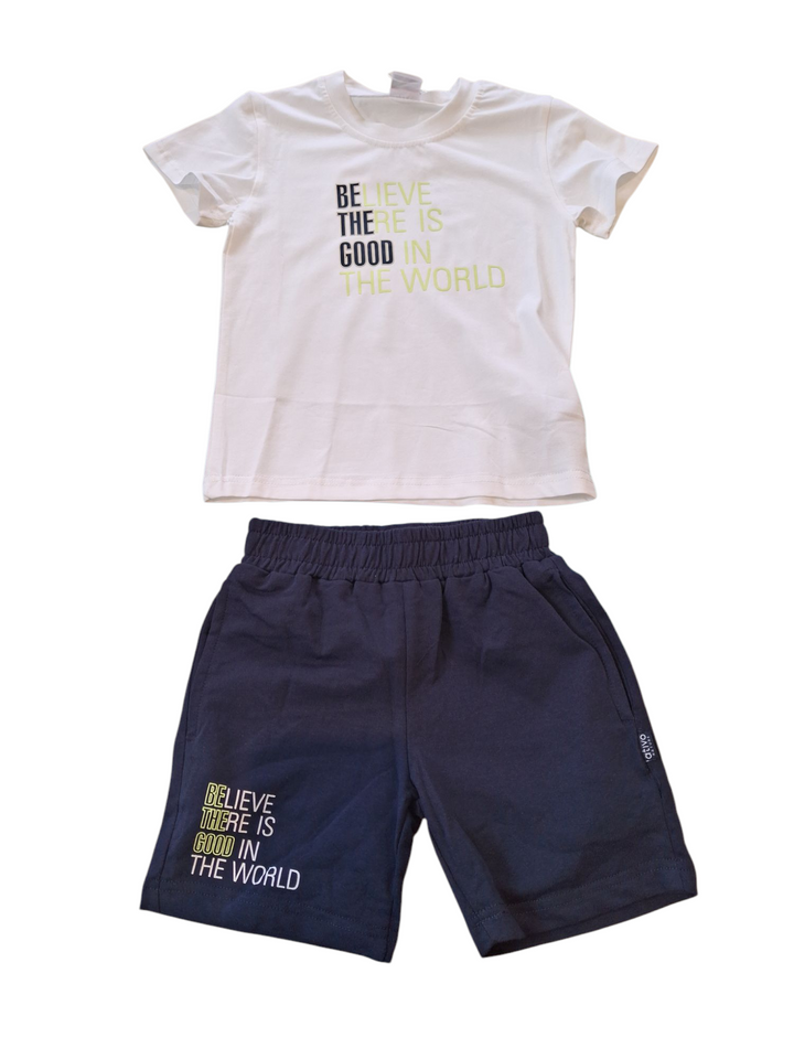 Questo completo da due pezzi è perfetto per il tuo maschietto. La stampa centrale aggiunge un tocco di originalità, mentre i materiali di alta qualità garantiscono un comfort duraturo. Ideale per i momenti di gioco rendendo il tuo piccolo alla moda e comodo.