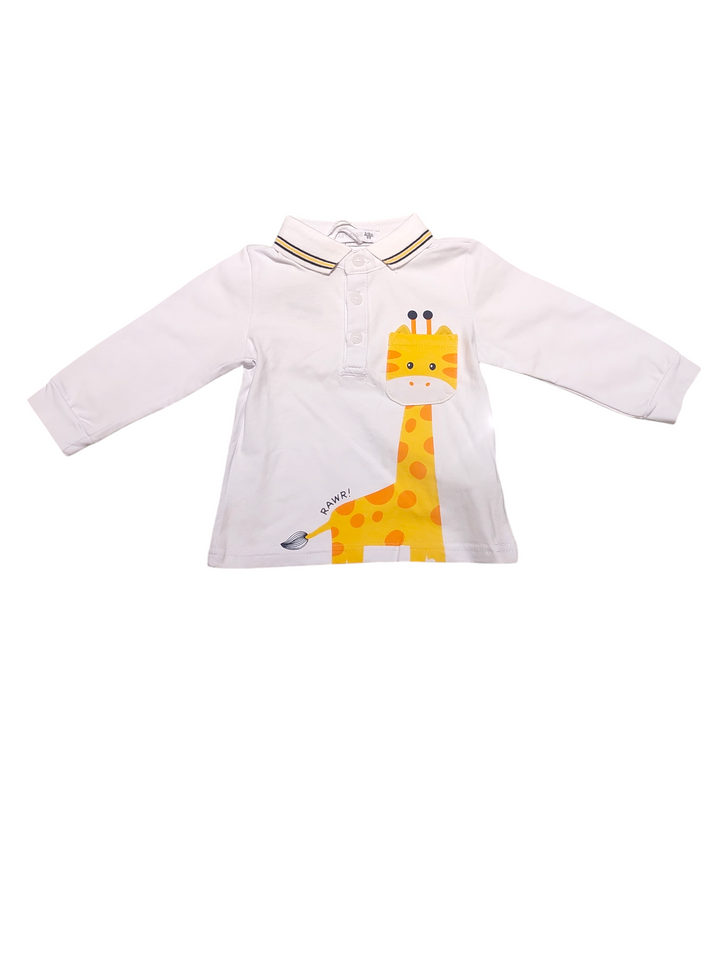 Questo completo da maschietto include un'elegante maglietta a polo con 3 bottoni, perfetta per una giornata di gioco. Il pantalone modello cargo con elastico in vita garantisce comfort e libertà di movimento durante ogni attività. Stampa giraffa per uno stile unico e originale.