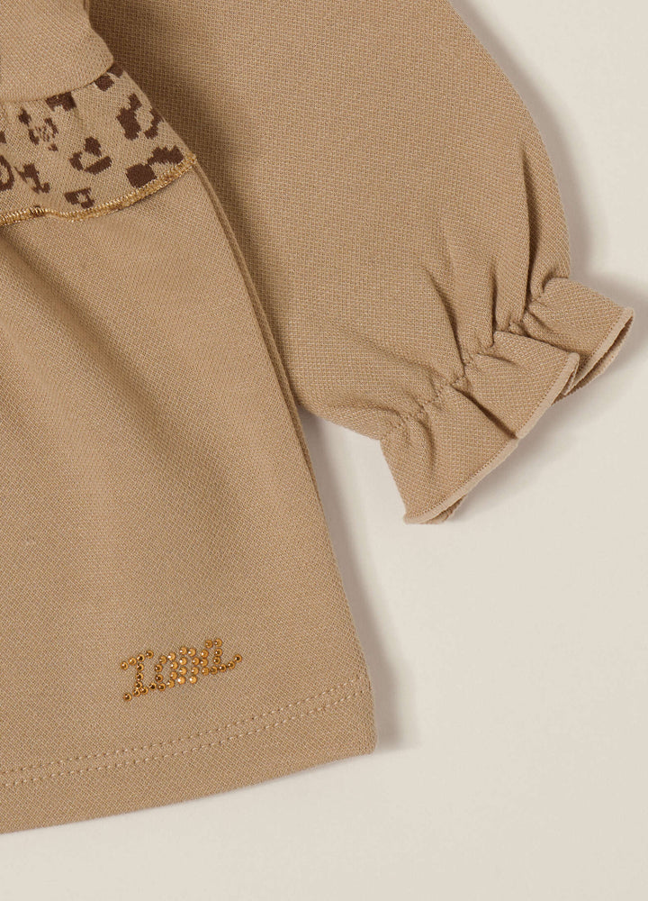 - Top con colletto Peter Pan e rouches applicata sul davanti.