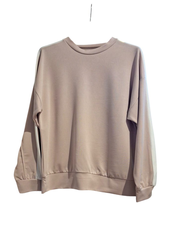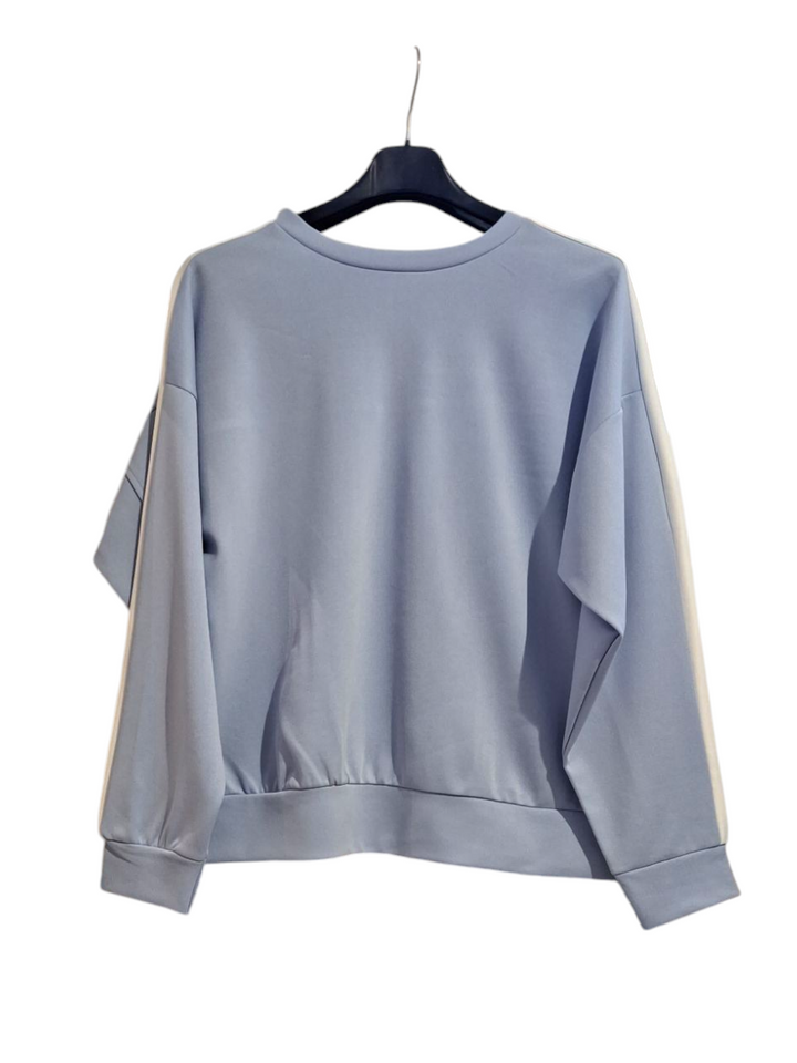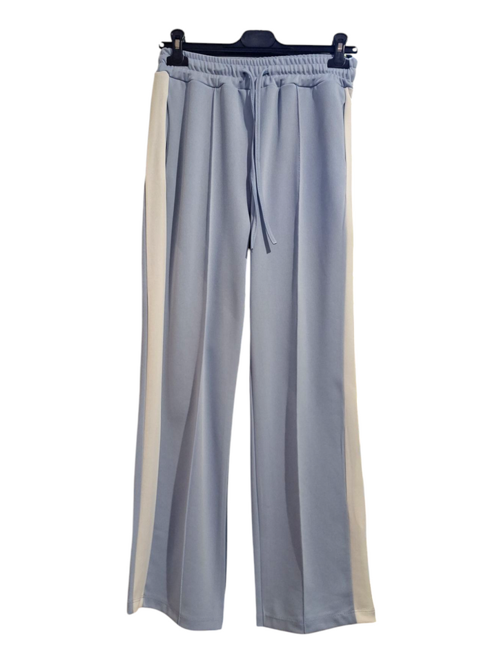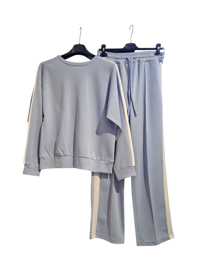 Realizzato in morbido cotone, il completo 2 pezzi per ragazza w donne alla moda è composto da una felpa girocollo con elegante banda sulle maniche e un pantalone a palazzo con pratico elastico in vita regolabile. Comfort e stile per le giovani fashioniste.