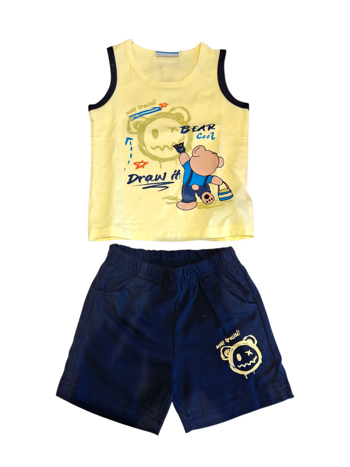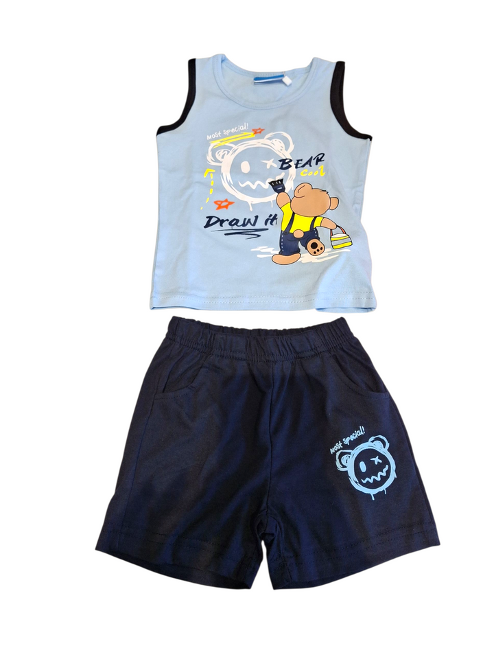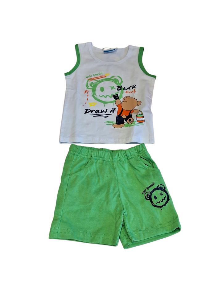 Questo completo a canotta per maschietto è l'ideale per l'estate. Realizzato con materiali di alta qualità e tessuti leggeri, offre comfort e freschezza nei giorni più caldi.