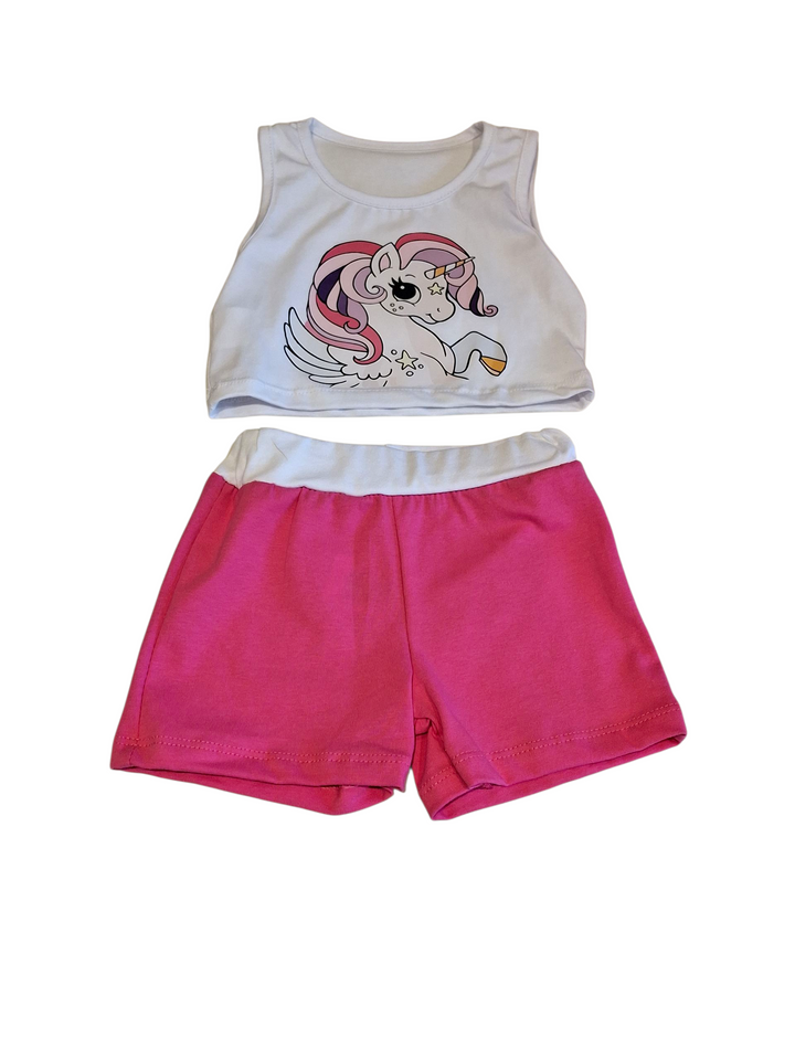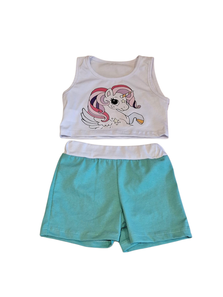 Questo completo a canotta con una stampa di unicorno è l'ideale per l'estate. Realizzato in tessuto leggero, è perfetto per le giornate calde e per mostrare la personalità di tua figlia con un tocco di magia. Un must-have per le piccole fan degli unicorni.