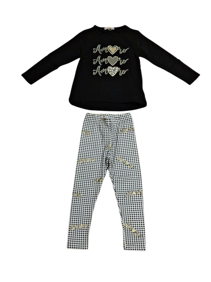 Questo completo per femminuccia è perfetto per ogni occasione. La t-shirt manica lunga con stampa aggiunge un tocco di stile, mentre i leggings a fantasia sono comodi e trendy. Ideale per una bambina alla moda e sempre al passo con le ultime tendenze.