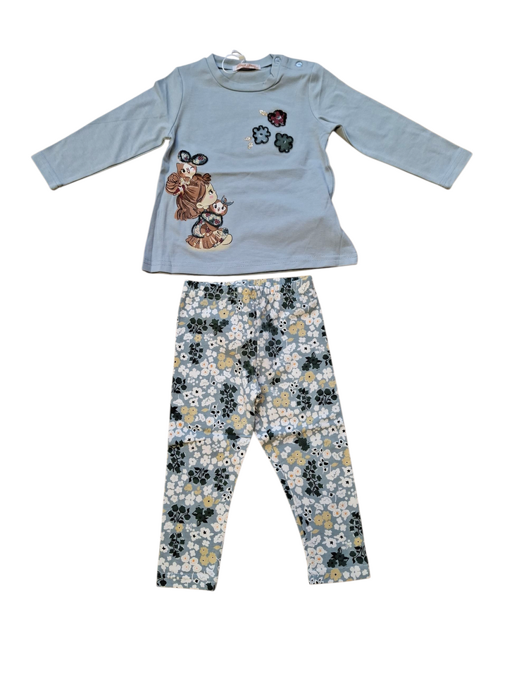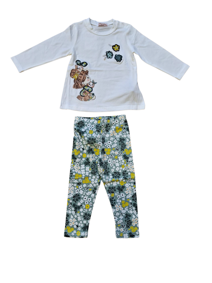 Questo completo 2 pezzi è perfetto per le femminucce! Include una maxi t-shirt stampata e leggings con fantasie a fiorellini. Ideale per far risaltare lo stile e la personalità della tua piccola fashionista. Confortevole e alla moda, perfetto per ogni occasione.