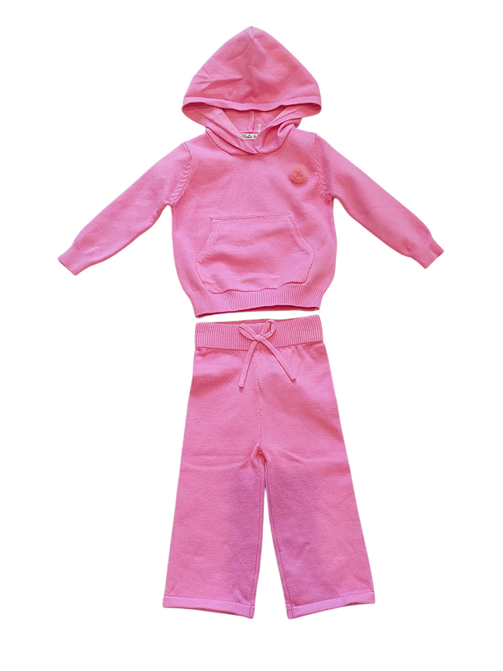 Questo completo in maglia da due pezzi è perfetto per le femminuccie. La maglia ha un cappuccio e una comoda tasca marsupio, mentre i pantaloni sono in stile palazzo per un look casual ma elegante. Ideale per ogni occasione!
