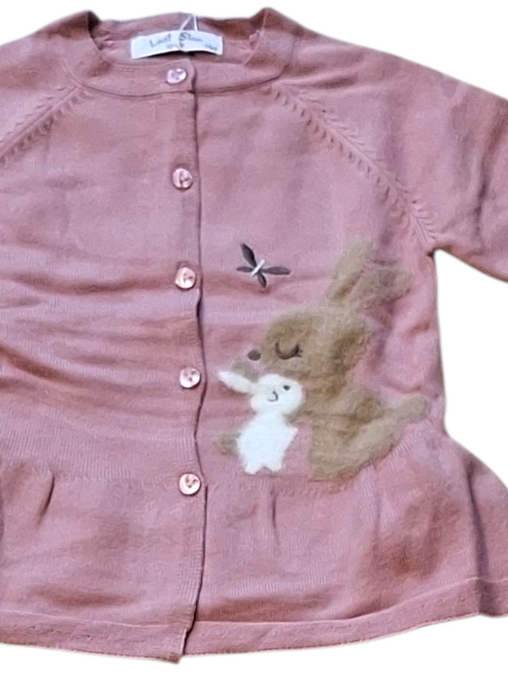 Il completo in maglia per femminuccia è perfetto per le giornate più fresche. Il cardigan con il coniglietto a rilievo offre una morbidezza irresistibile e il pantaloncino garantisce un comfort assoluto. Aggiungi un tocco di dolcezza e stile al guardaroba della tua bambina con questo delizioso completo.