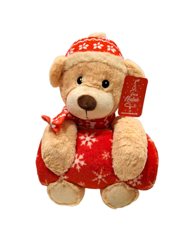 Questa confezione natalizia è perfetta per un regalo speciale durante il periodo festivo. Include un morbido peluche natalizio e un caldo plaid per rendere le serate invernali ancora più accoglienti.
