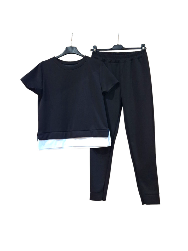 Questo cordinato sportivo per ragazze offre una maglia mezza manica e un pantalone con polsini, perfetti per un look comodo e alla moda. Realizzato con materiali di alta qualità, garantisce un comfort duraturo durante l'attività fisica. Completa il tuo outfit sportivo con questo coordinato versatile e alla moda.