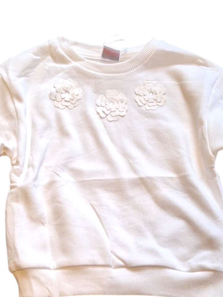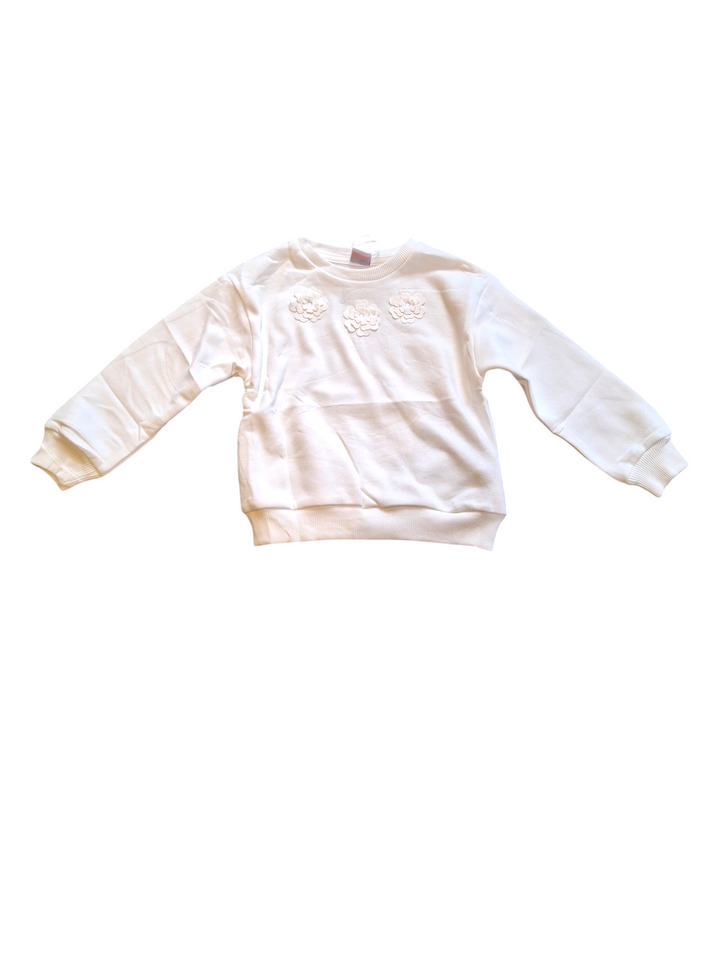 Una felpa fiorellini dalla fantasia dolce e delicata, perfetta per le femminucce. Ideale per un look casual ma sempre alla moda, grazie al girocollo e ai polsini che la rendono comoda e felpata per un comfort imbattibile.