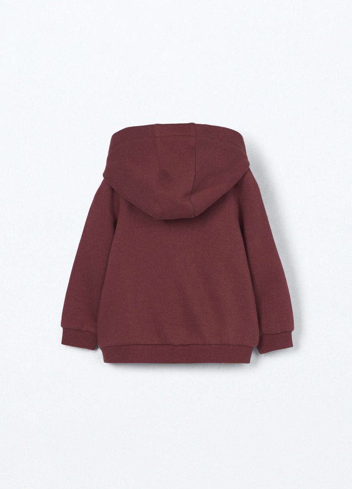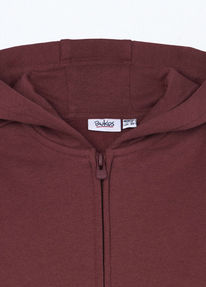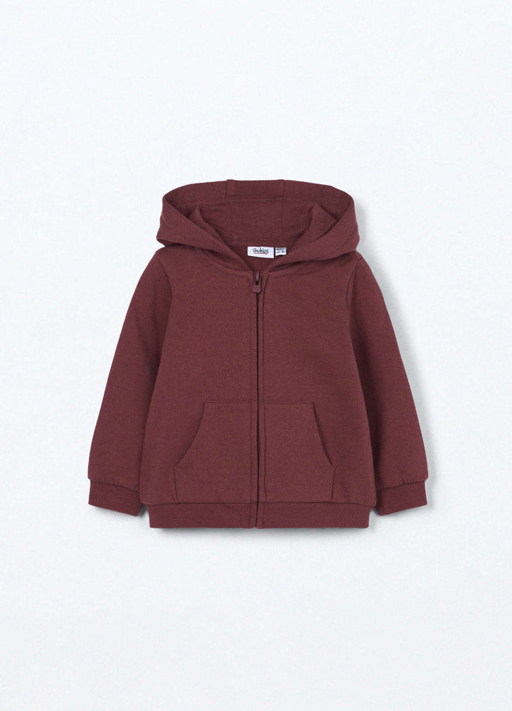 • Felpa full zip in puro cotone con cappuccio. Due tasche applicate sul davanti. Fondo e polsini in costina. Tinta unita.