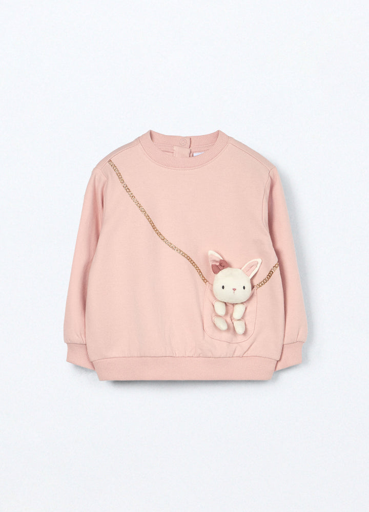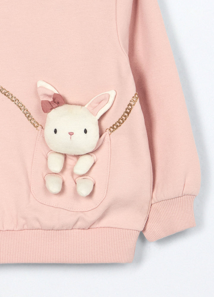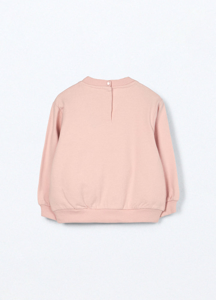 • Felpa in cotone fleece stretch con stampa glitter e applicazioni 3D