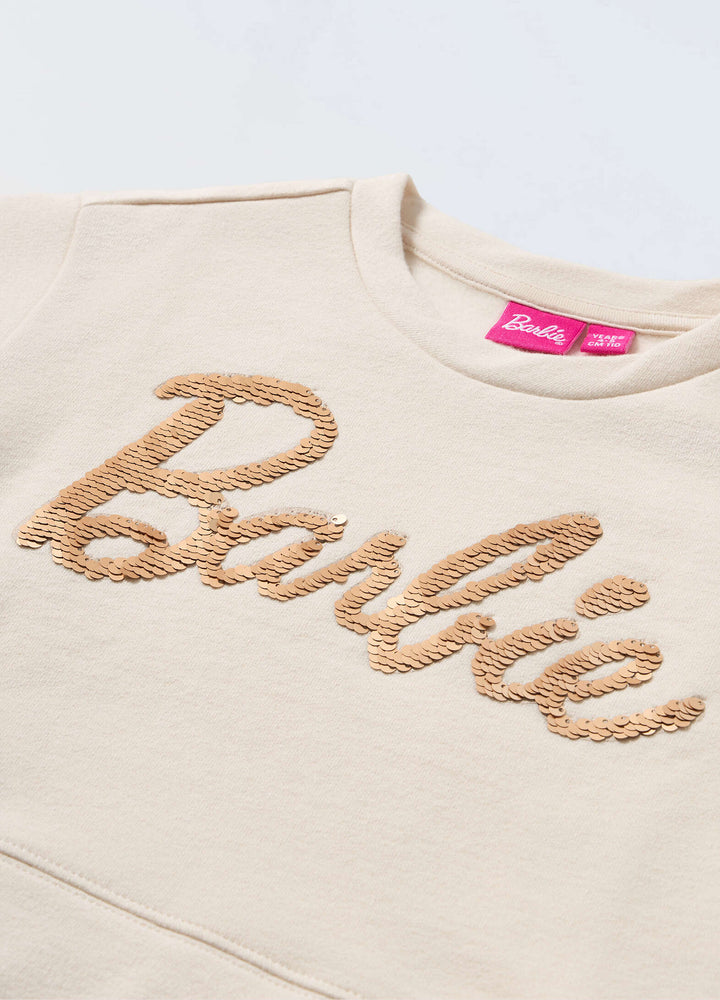 • Felpa Barbie in cotone stretch con paillettes applicate. Scollo rotondo. Tinta unita.