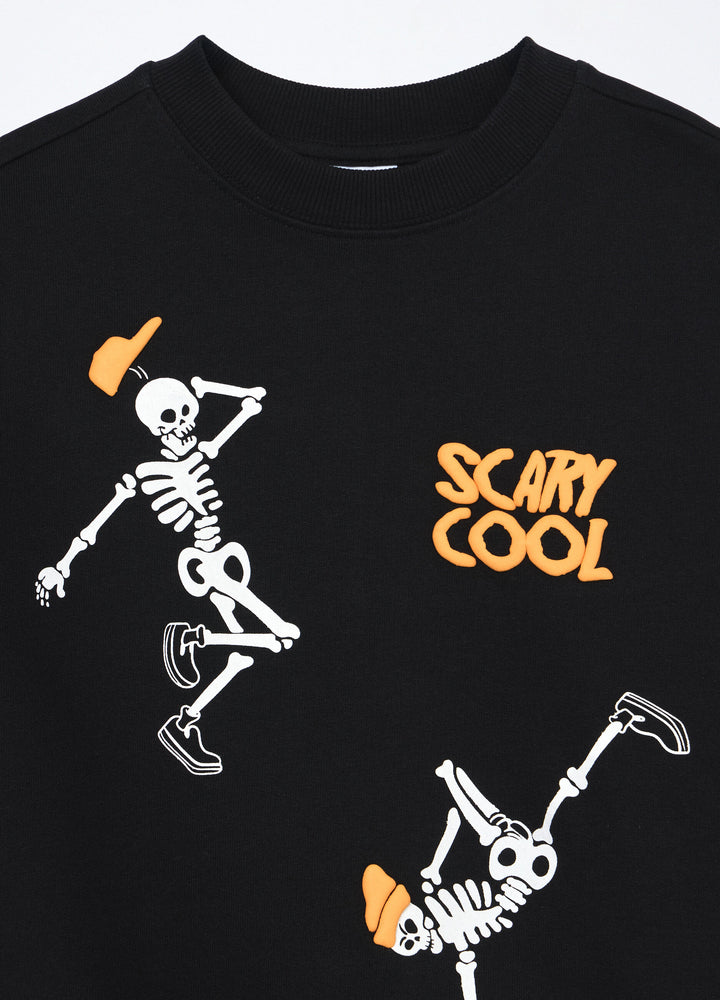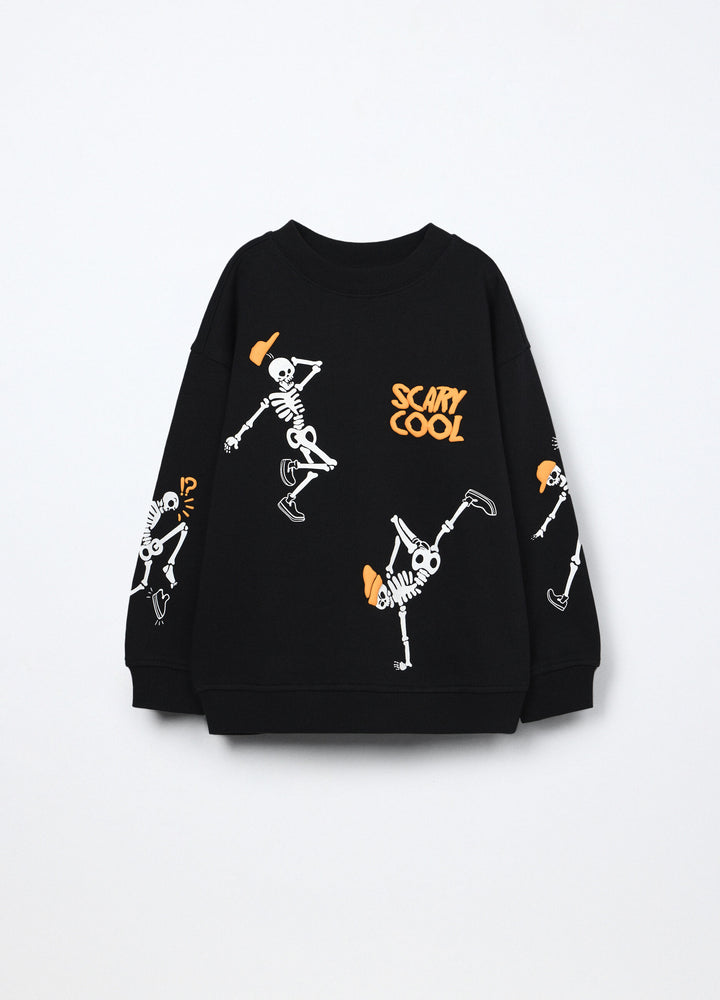 • Felpa in puro cotone con stampa a motivo all over