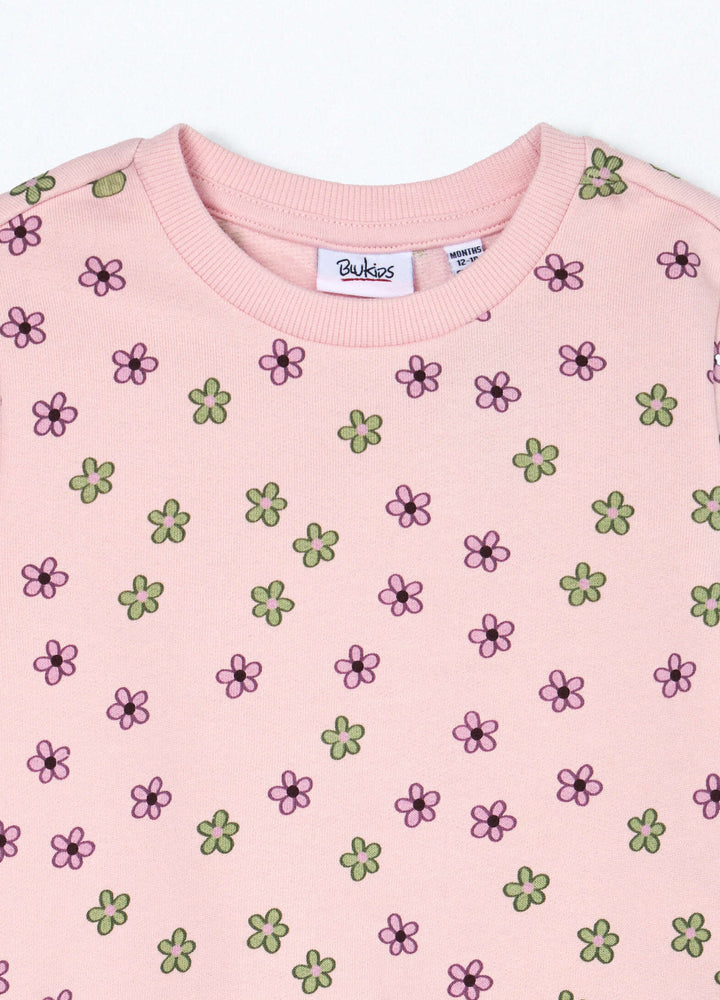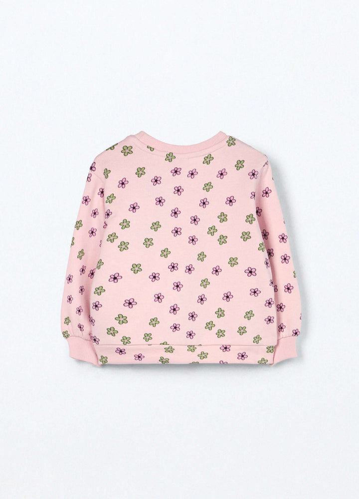 • Felpa in puro cotone con stampa a motivo all over. Girocollo e polsini in costina.
