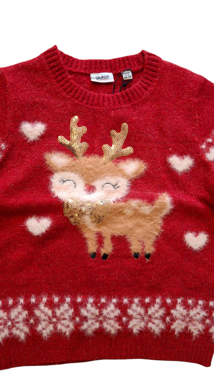 • Girocollo tricot con lavorazione jacquard natalizia e inserti in filo lurex