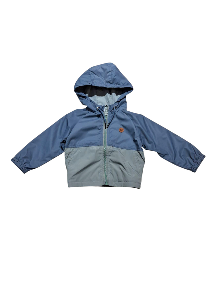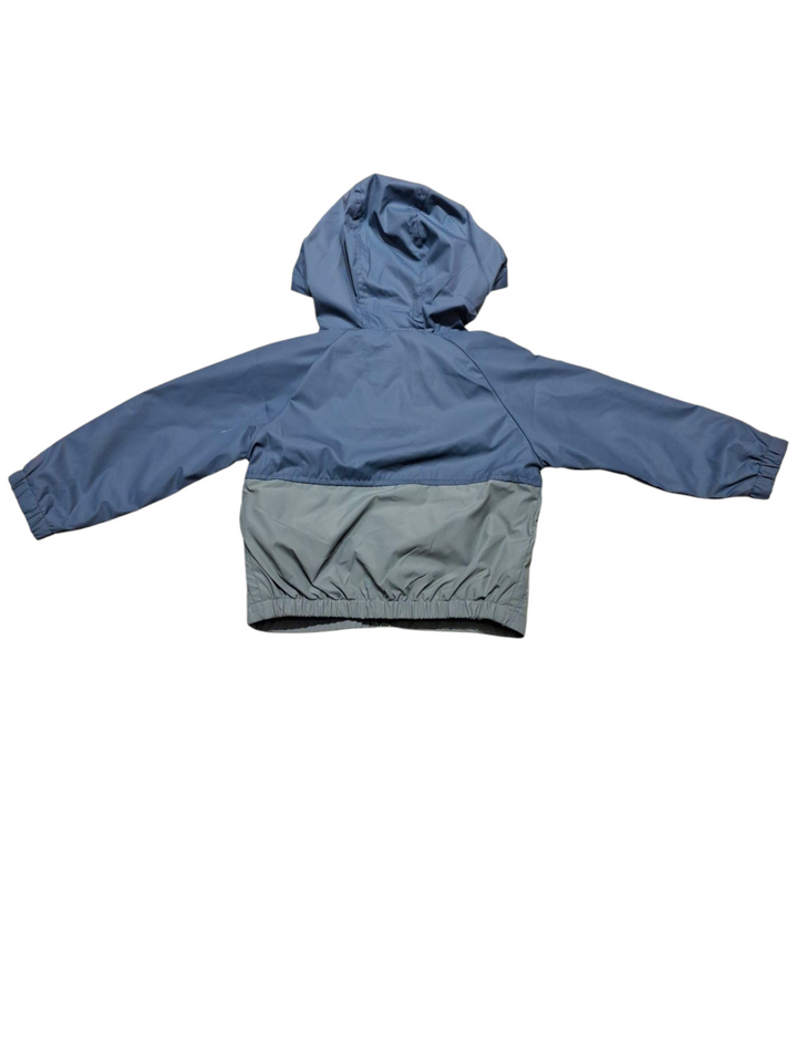 Un giubbino antivento bicolore per maschietto, con cappuccio e chiusura a zip. Realizzato con un elastico vicino ai polsi per garantire una vestibilità aderente e proteggere dai venti freddi. Perfetto per proteggere il tuo bambino durante le attività all'aperto.