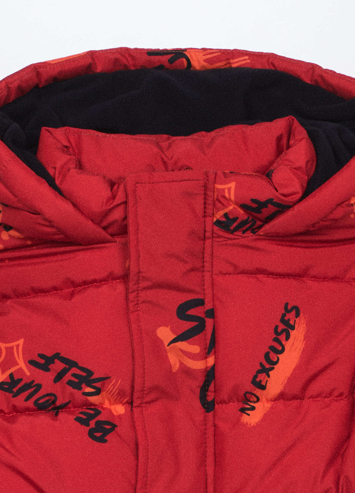 • Giubbino imbottito con cappuccio e stampa a motivo all over. Due tasche a zip sul davanti con colore a contrasto.