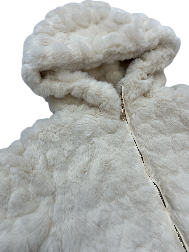 • Giubbino in eco pelliccia con cappuccio.