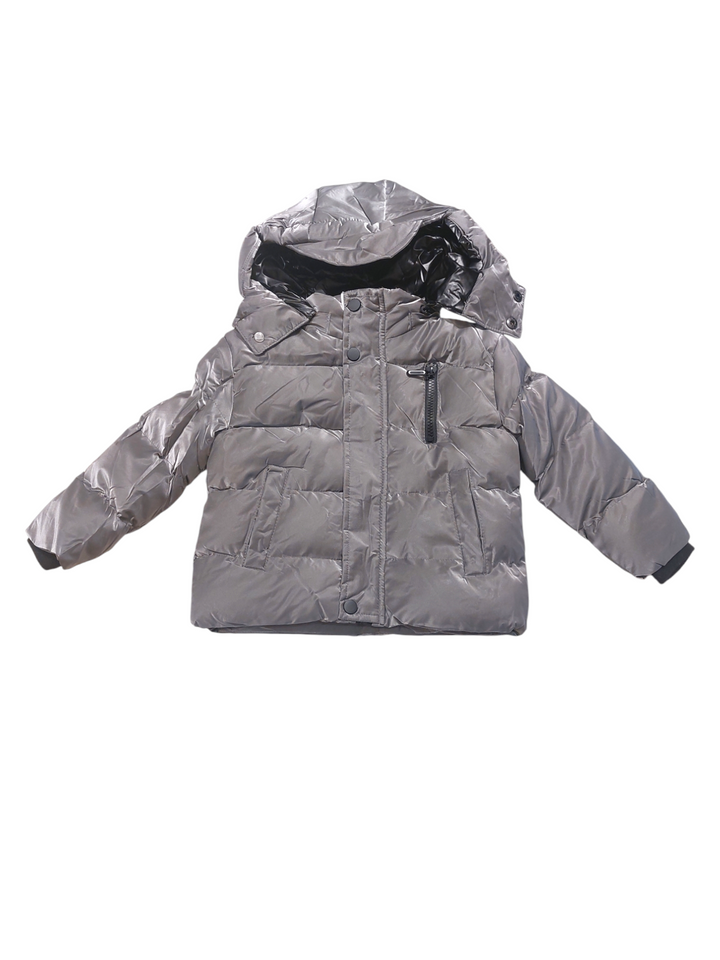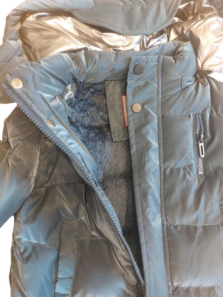 Questo giubbino maschietto è l'ideale per affrontare l'inverno grazie alla morbidezza e al calore del materiale. La fodera in pelliccia e il cappuccio staccabile offrono ulteriore protezione contro il freddo, mentre la chiusura con zip e bottoni a clip garantiscono una maggiore sicurezza e comodità. Perfetto per il tuo piccolo avventuriero!