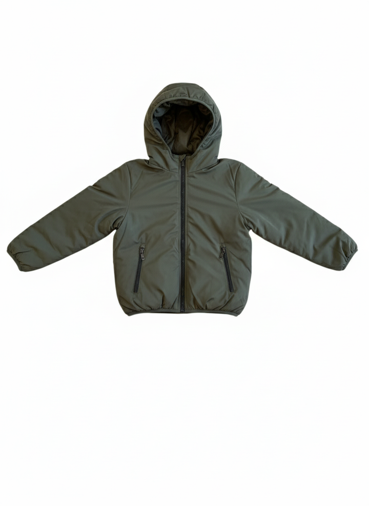 Un giubbino reversibile da maschietto che offre versatilità e stile. Realizzato con tessuti di alta qualità, questo giubbino offre la comodità e la funzionalità cercate dai genitori. Ideale per ogni occasione, la sua reversibilità permette di cambiare look in un istante.