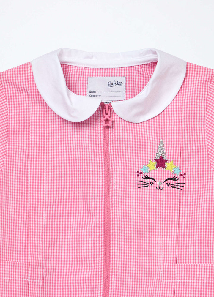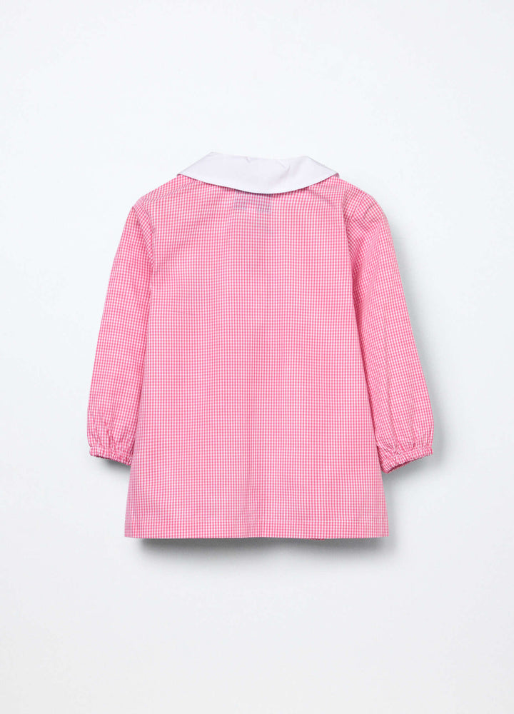 • Ricamo su punto cuore e colletto peter pan a contrasto