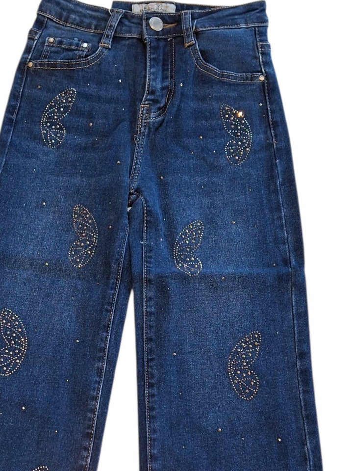 Questi jeans a palazzo per femminuccia con farfalle di brillantini sono perfetti per un look elegante e alla moda. Realizzati con materiali di alta qualità, ti offrono la massima comodità e un tocco di luce grazie ai brillantini. Aggiungi un tocco di eleganza al tuo guardaroba con questi jeans unici!