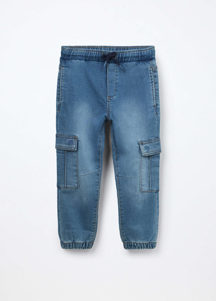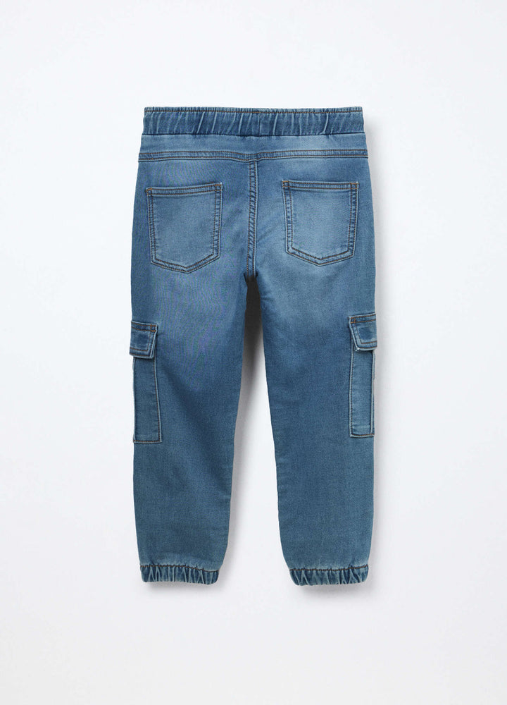 Jeans cargo pullo on in denim mercerizzato bambino