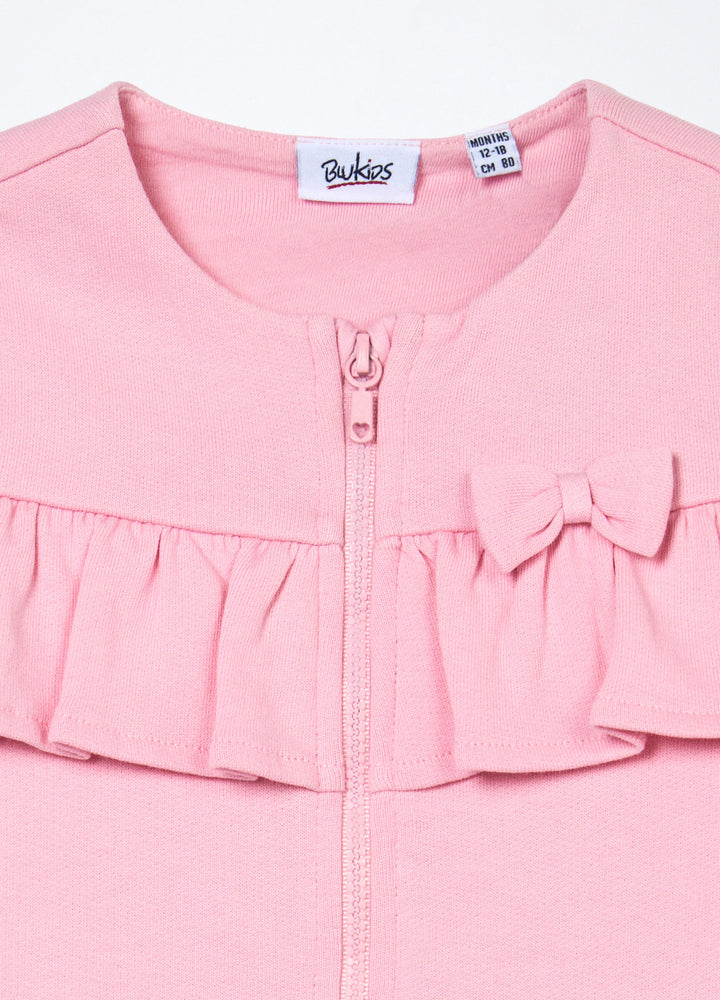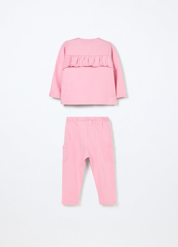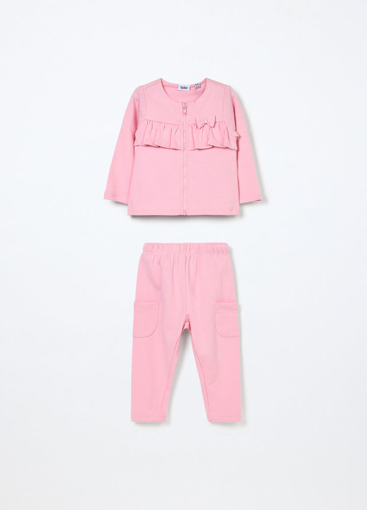 - Jogging set in french terry di puro cotone composto da top con scollo rotondo e rouches applicate sul davanti