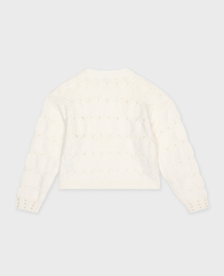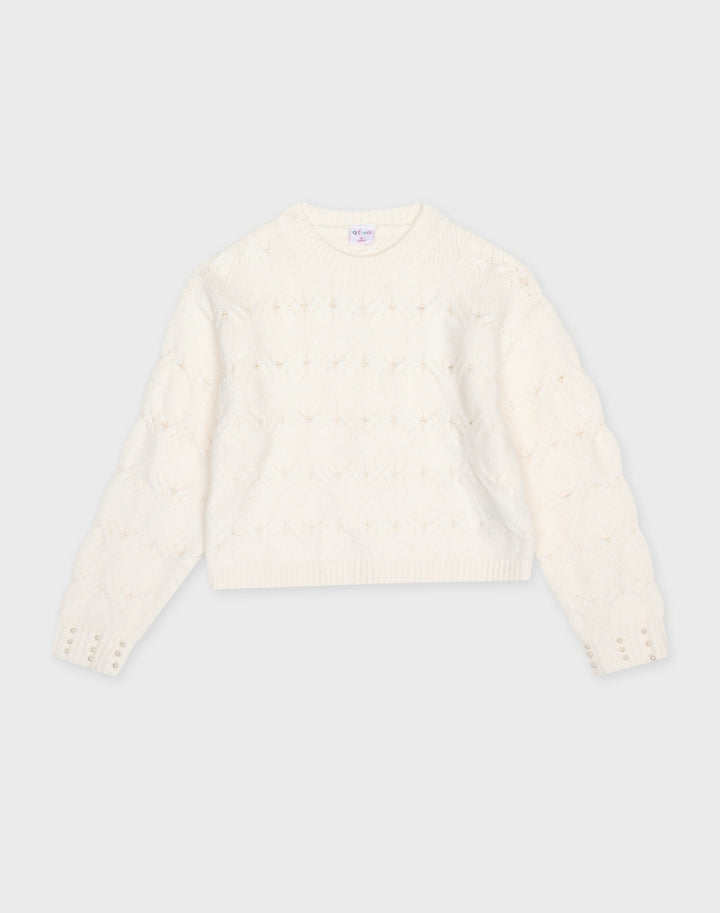 Questo maglione per femminuccia girocollo è perfetto per le occasioni speciali grazie alle perline decorative sui polsini. Realizzato con materiali di alta qualità, offre comfort e stile per la tua bambina. Aggiungi un tocco di eleganza al suo guardaroba con questo maglione esclusivo.