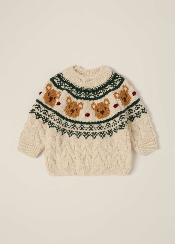 Il maglione beige di IANA per neonato è caratterizzato da un motivo jacquard adorabile con orsetti. Realizzato in misto acrilico, poliamide e poliestere, offre comfort e calore per il tuo bambino. La chiusura con bottoni laterale facilita il cambio e il collo rotondo assicura una vestibilità comoda. Perfetto per la stagione autunno/inverno, questo maglione è ideale per tenere al caldo il tuo piccolo in stile.