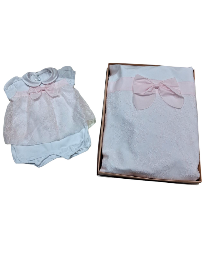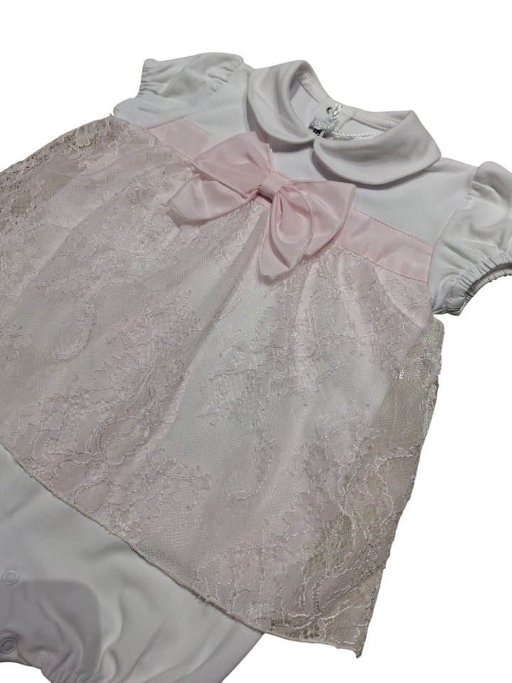 Il pagliaccetto con fiocco e balza in tulle ricamato è la scelta perfetta per un'occasione speciale. Il fiocco aggiunge un tocco di eleganza, mentre la balza in tulle ricamato aggiunge un tocco di dolcezza. Realizzato con cura e attenzione ai dettagli, questo pagliaccetto garantisce un look raffinato e confortevole per la tua bambina.
