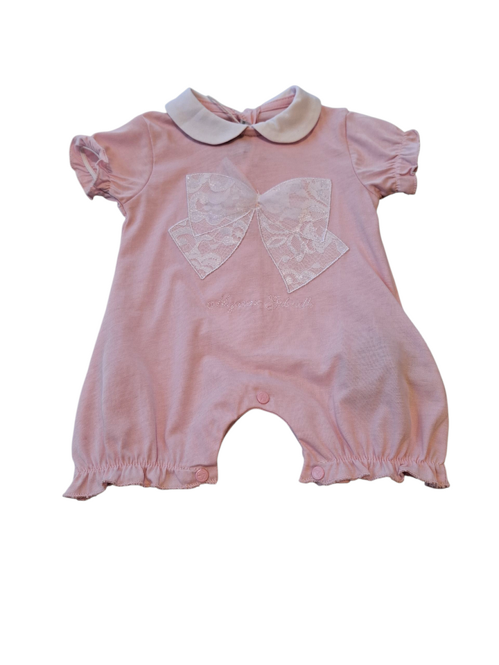 Realizzato in morbido cotone, questo pagliaccetto mezza manica è perfetto per la tua piccola femminuccia. Il fiocco in tulle al centro aggiunge un tocco di eleganza, mentre i bottoni sul retro e sotto le gambine rendono il cambio del pannolino un gioco da ragazzi. Confortevole e pratico per ogni occasione.