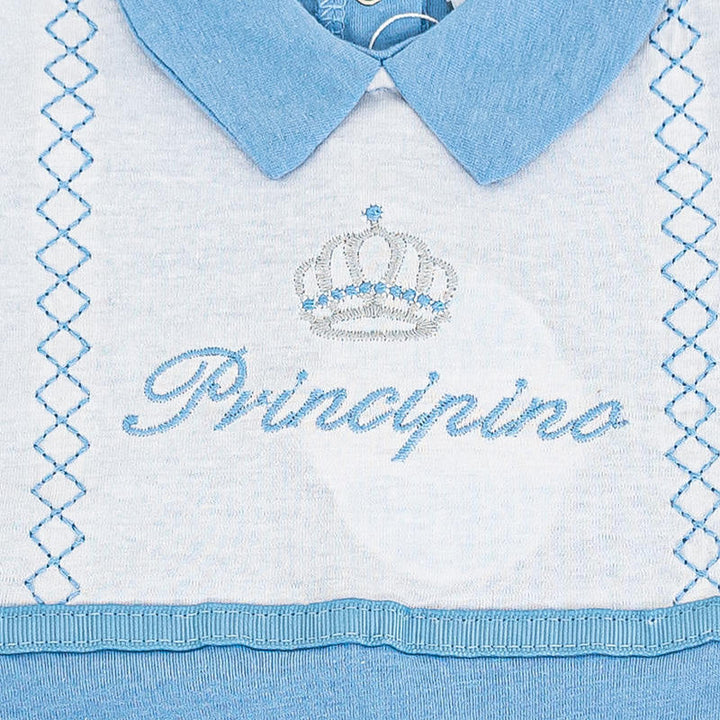 Questo pagliaccetto per maschietto è perfetto per i piccoli principi. Con la scritta "Principino", il tuo bambino sarà sempre al centro dell'attenzione. Realizzato con materiali di alta qualità, è morbido e confortevole per la pelle delicata dei neonati. Un must-have per ogni piccolo principino in crescita.