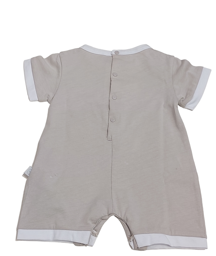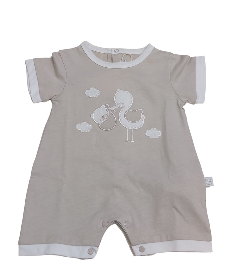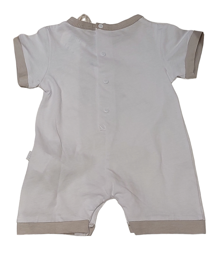 Pagliacetto di cotone girocollo mezza manica con ricamo.Bottoni a pressione sul retro e sotto le gambine.Ideale per corredino neutro o per idea regalo gender reveal.