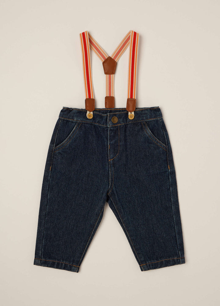 Pantaloni denim bambino con bretelle