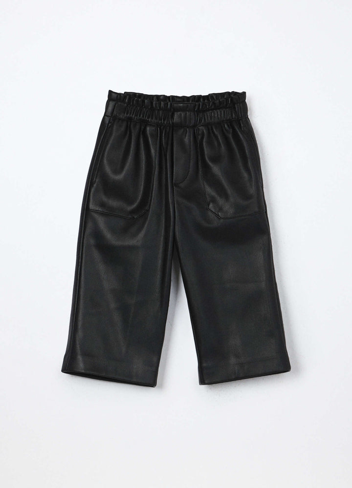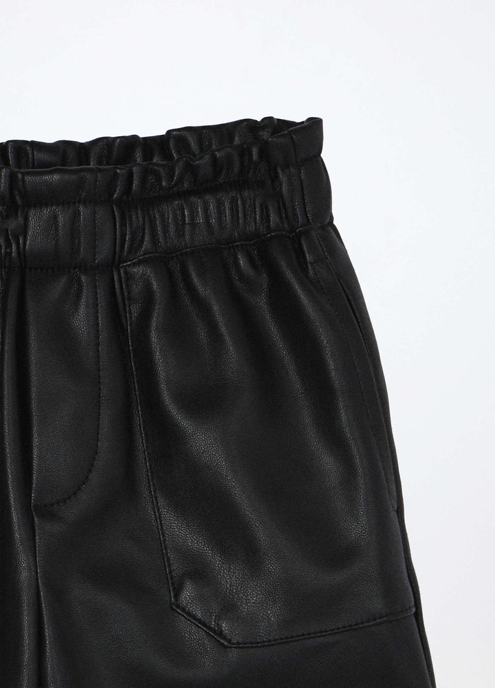 - Pantaloni wide leg in eco pelle con vita paperbag.
